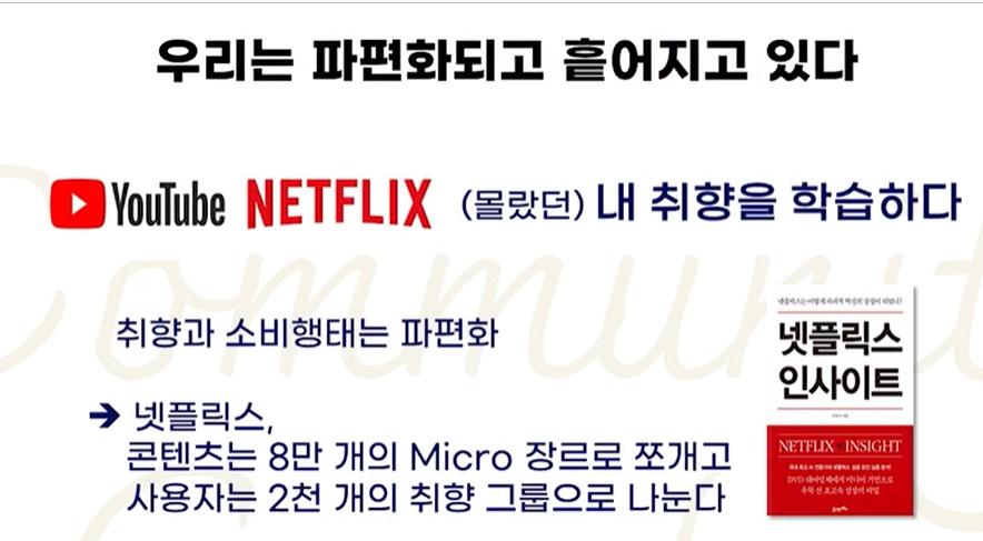 트렌드를 알려면 고객을 먼저 분석해야 함. 개인의 취향을 가장 잘 알 수 있는 콘텐츠! 사회학자이자 매스컴 이론가) 에버렛 로저스.